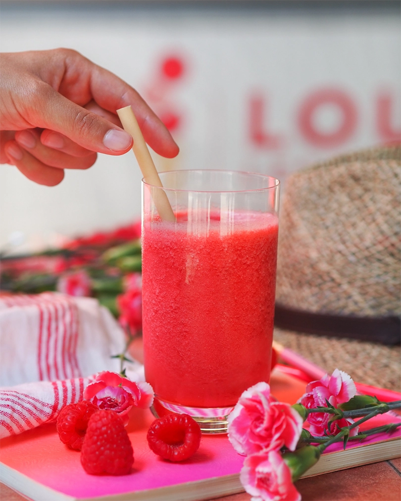 Pour apporter une texture lisse et onctueuse à nos smoothies, nous y ajoutons un jus de fruits 100% pur jus.