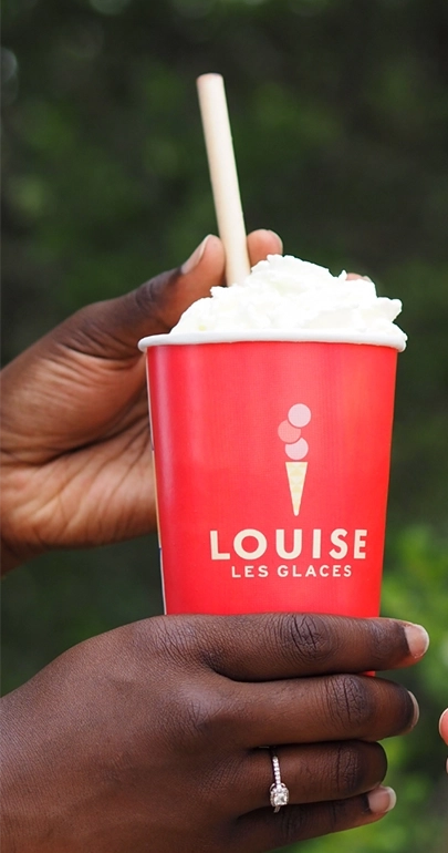 LOUISE vous offre la possibilité de personnaliser votre milkshake en choisissant deux saveurs de glace parmi notre sélection artisanale, avec une dose de lait et une dose de chantilly pour une texture onctueuse et gourmande. Chez nous, pas de sirop ni d’arôme artificiel, juste de la glace de qualité pour un milkshake authentique et délicieux.
